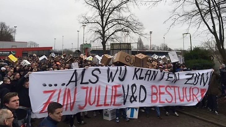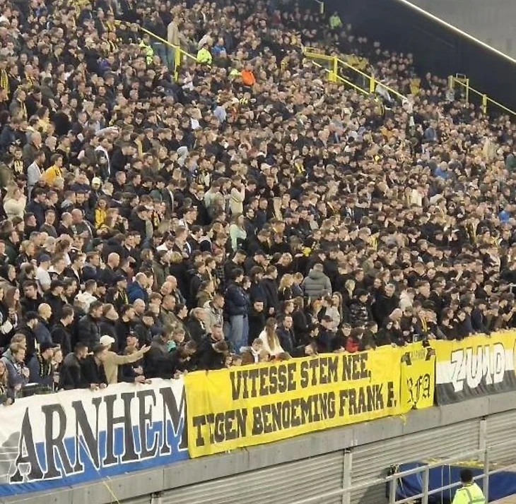 На следующей игре против «Алмере Сити» фэны «Витесса» снова вывесили баннер против нового главы футбольного союза Нидерландов, чей офис еще недавно брали штурмом и блокировали его работу из-за того, что голландские футбольные чиновники не дают продать их клуб американскому инвестору, что привело «Витесс» к печальным последствиям и предпоследнему месту в турнирной таблице.