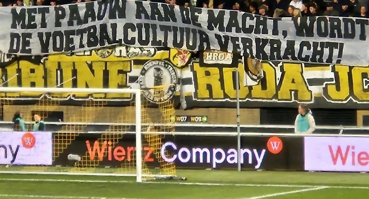 Фанаты «Роды» на гостевой игре против «Маастрихта» вывесили баннер «Слуга-ублюдок» на фоне немецкого флага и тряпку с перечеркнутым павлином. Павлин — потому что фамилия Пау в голландском языке означает «павлин». Ну а баннер на немецком языке и с немецким флагом ультрас «Роды» используют потому, что город Керкраде, в котором базируется «Рода», находится в провинции Лимбург на юге Голландии и граничит с Германией, а многие жители города ассоциируют себя с Германией в том числе.