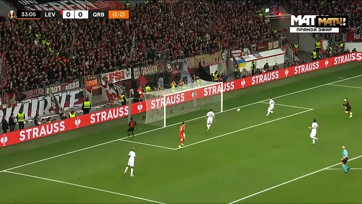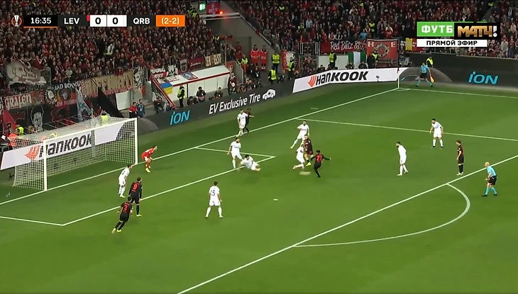 Теперь настроение на «Бай-Арене» поднялось: болельщики «Байера 04» гнали свою команду вперед, а лидеры Бундеслиги активно прессинговали соперника.
