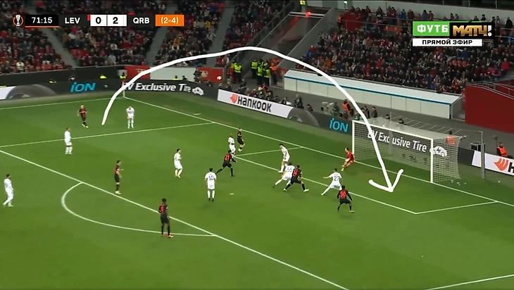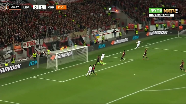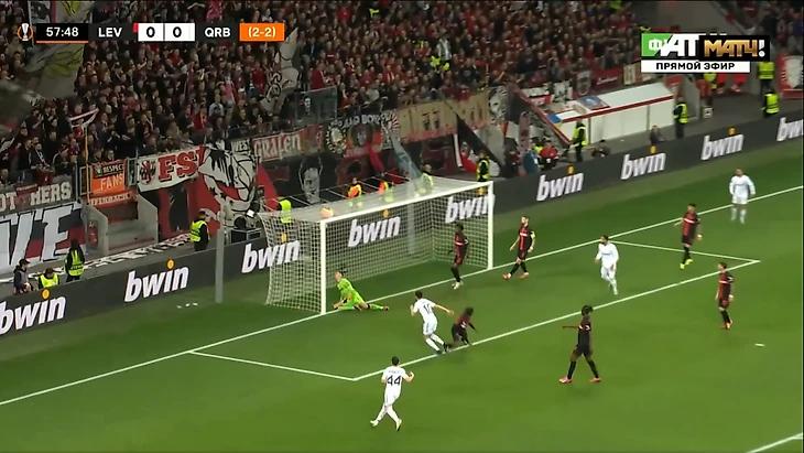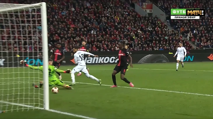Но «Байер 04» не сдался и быстро сократили счет до 1:2. Фримпонг с лёта всё же смог пробить Лунёва.