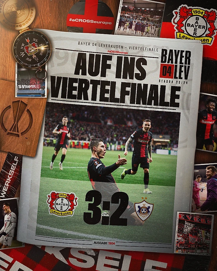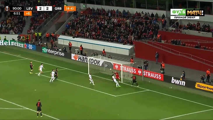 «Байер 04» выиграл ответный матч 1/8 финала Лиги Европы УЕФА на «Бай-Арене» со счетом 3:2 после проигрыша 2:0 против «Карабаха». Сначала гол забил Джереми Фримпонг, когда команда была в большинстве, затем вышедший на замену Патрик Шик забил дважды в добавленное время и привел болельщиков «черно-красных» в экстаз.