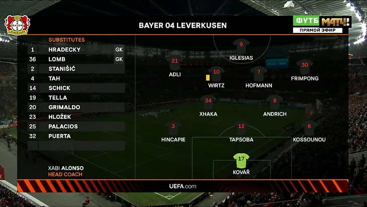 По сравнению с домашней победой над «Вольфсбургом» со счетом 2:0 главный тренер Хаби Алонсо сменил свои стартовые позиции с одиннадцати на семь. Только Пьеро Хинкапи, Эдмонд Тапсоба, Гранит Джака и Флориан Вирц снова вышли в стартовом составе. С капитаном Робертом Андрихом и Гранитом Джакой в качестве единственного шестого номера.