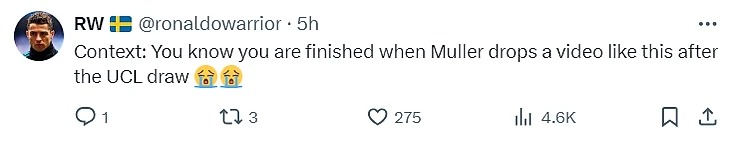 💭 «Контекст: вы понимаете, что для вас все кончено, когда Миллер выкладывает подобное видео после жеребьевки ЛЧ😭😭»