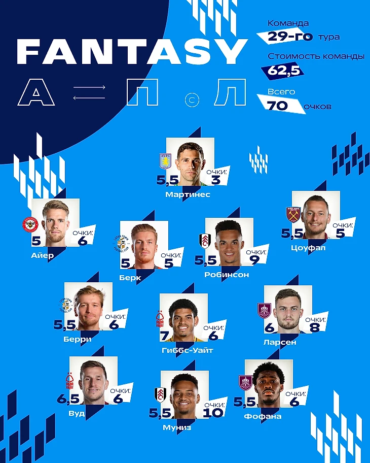 ● состав – лучшее, что можно было получить в туре, если собирать команду по фэнтези-правилам (общая стоимость – 100, максимум двое из одного клуба, при равенстве очков проходит более дешевый).