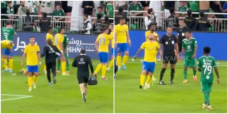 В чемпионате Саудовской Аравии «Аль-Наср» обыграл «Аль-Ахли» благодаря точному удару Криштиану Роналду с пенальти. И до, и после этого момента игроков «Аль-Насра» обстреливали с трибун разными предметами.
