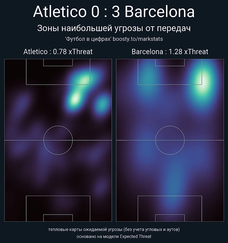 На левом фланге у «Барселоны» вышел Эктор Форт, левым центральным защитником был Кубарси. Эта зона могла стать потенциально уязвимой. Дело не в самих игроках (они сыграли здорово). Просто для Форта это не его родная позиция, а Кубарси в любом случае (как бы я не ценил его навыки на мяче) ещё из-за возраста не готов физически выдерживать борьбу со всеми игроками «Атлетико».