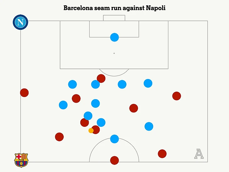 «Барселоне» не удалось создать офсайд-ловушку, когда «Наполи» ответил собственным голом после открывания в полуфланг. На самом деле, похоже, только Кубарси понимал, что именно это они и пытаются сделать.