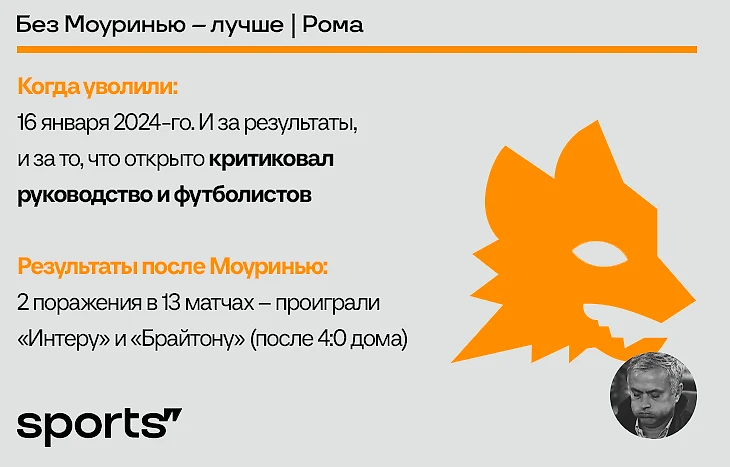 Рома жозика - 0 секунд в ЛЧ, 6 место в Серии А в 2022, 7 место в 2023, 9 место в 2024 (на момент увольнения)