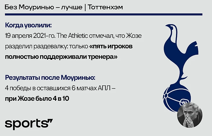 Кажется, проблему Жозе идеально описал один из тренеров «Тоттенхэма» в комментарии The Athletic: «Мне нравится Жозе, но он оторван от нового поколения игроков и нового поколения тренеров. Он застрял в своем видении».