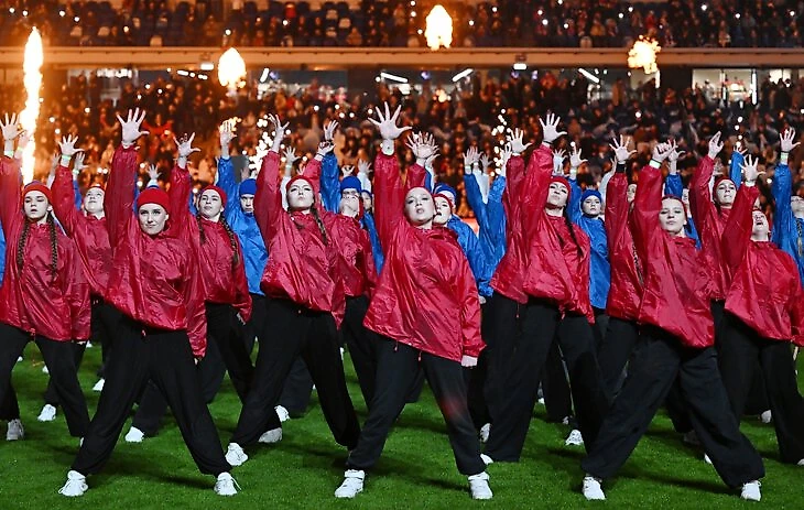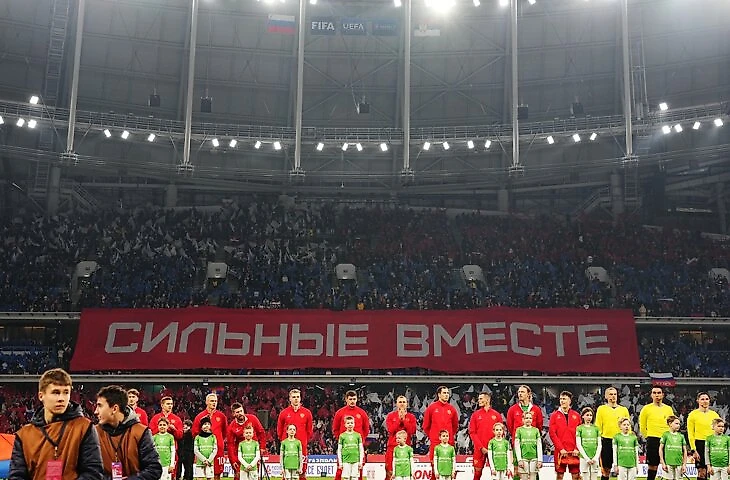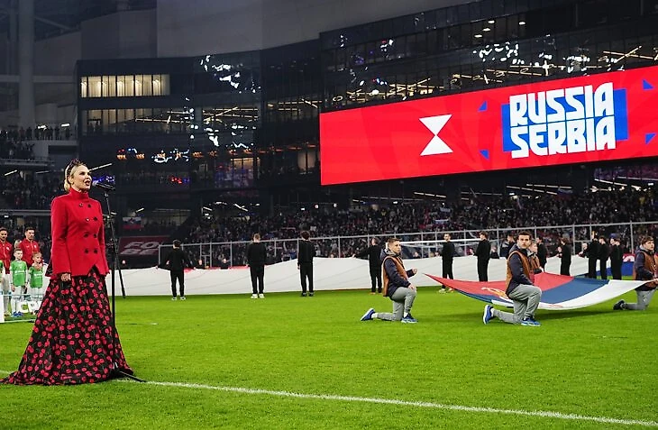 Кажется, песня, полный стадион и статустные гости зарядили игроков перед матчем. После это отметил главный тренер сборной России Валерий Карпин.