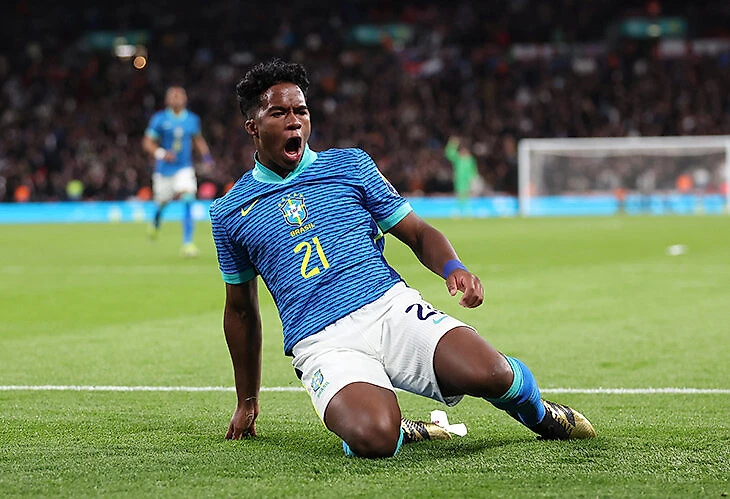 Эндрик сверкает: забил в двух матчах сборной подряд (причем Англии и Испании), бьет рекорды. Впереди последние месяцы в «Палмейрасе» и переход в «Реал».