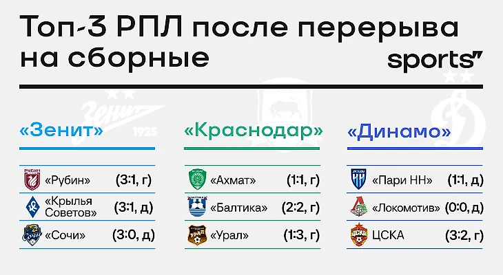 «Зенит», «Краснодар» и «Динамо»: кто фаворит уникальной чемпионской гонки РПЛ?