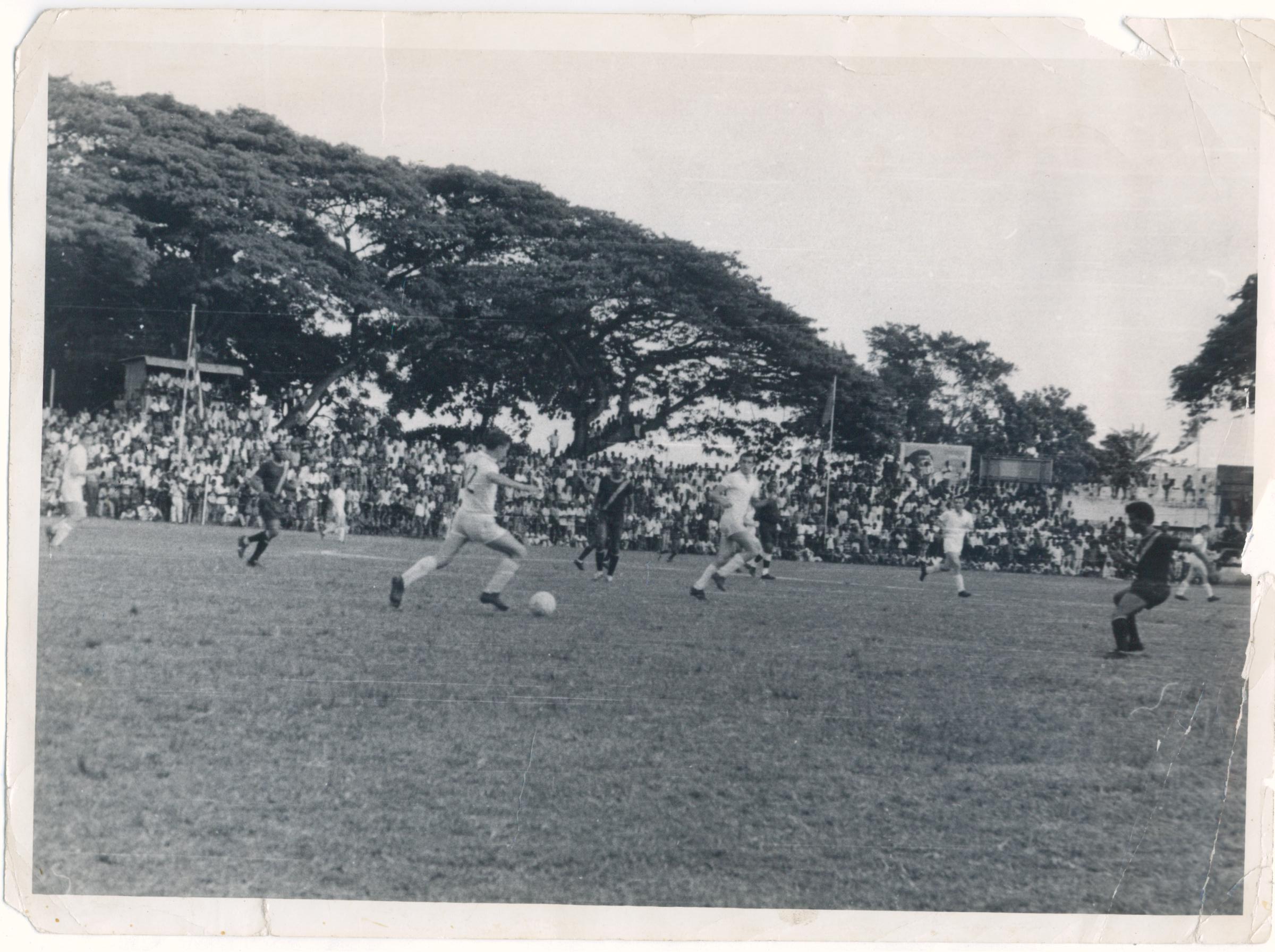 Крупнейшим в стране являлся стадион в Ибадане, рассчитанный на двадцать пять тысяч зрителей. Тот, что в Лагосе, вмещал около десяти тысяч болельщиков – публики колоритной, одетой в пестрые халаты и высокие головные уборы, неистово аккомпанирующей футболу дробными ударами в барабаны и бубны. Когда же на «кривую», с редкой жухлой травой, поляну лагосского стадиона вышел играть «Сокол» (ему в первом матче противостояла армейская команда, по отдельным данным – сборная вооруженных сил), весь этот звуковой прессинг стал особенно яростным – не в меньшей степени, чем сама игра нигерийцев против наших. Футболисты хозяев не скупились на жесткие приемы. Но «Сокол» выдержал бой: на мяч в ворота Анатолия Печерского ответил голом Владимир Ряховский. Итог – 1:1. В перерыве матча и после игры гости, дабы предотвратить тепловые удары, прикладывали к телу кубики льда, доставленного из советского посольства.