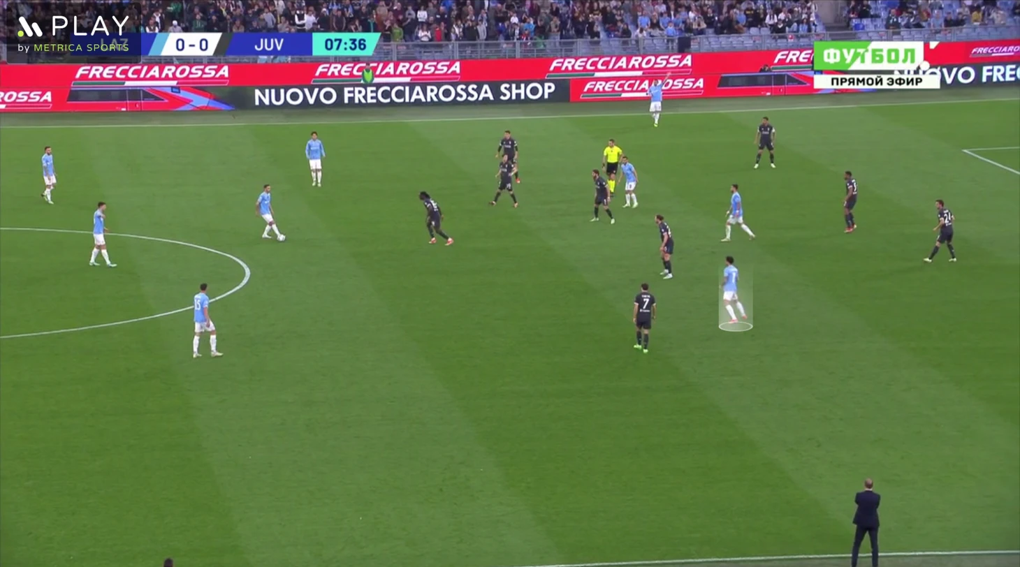 На половине поля «Ювентуса» регулярно располагалось по 5-7 игроков, что сильно затрудняло выход из обороны. Три отбора в атакующей трети и пять – в нейтральной далеко не самый плохой результат, но главная демонстрация успешности прессинга римлян – индекс PPDA, который в этом матче составил 6.38, что в два раза меньше того, что у «Лацио» было по сезону (12.97)!