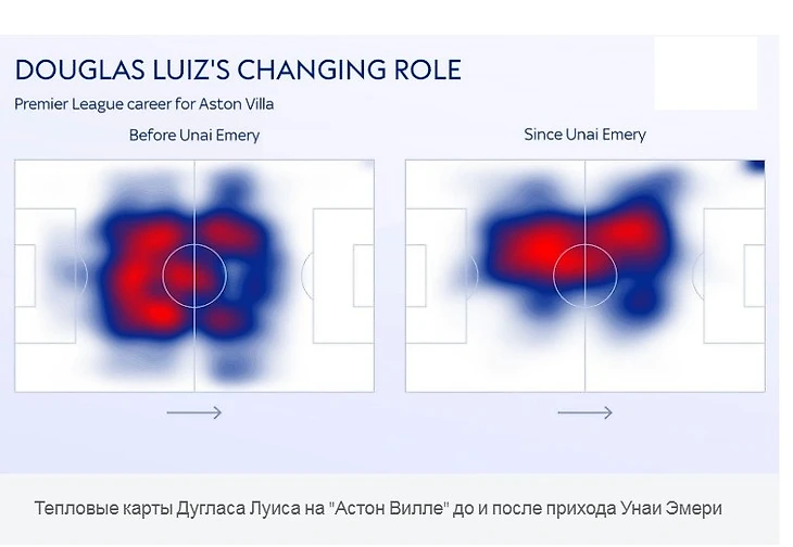 Это указывает на то, что Дуглас Луис продолжает контролировать игру, но теперь он может это делать на более опасных позициях. Эмери, будучи микроменеджером по натуре, доверяет ему в этом. «Самое важное - тактически позволить ему играть свободно». Однако есть еще один аспект улучшения, который его менеджер хочет признать. Многое из того, что изменилось на Вилле, было оформлено в контексте прихода нового тренера. Но это не вся история. Эмери помог ему помочь самому себе.«Вторая по важности вещь - это он сам», - объясняет он.