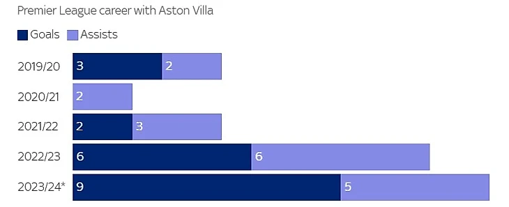 Это подтверждает, что несмотря на то, что 25-летний полузащитник все еще предпочитает контролировать мяч на своей половине поля, теперь он более привык к игре ближе к воротам противника. Это позволяет ему проявить свои творческие способности. «Конечно, мы стараемся использовать нашу структуру, чтобы поместить его в наиболее выгодное положение. Мы пытаемся адаптировать его к нашей структуре и заставить его чувствовать себя комфортно в ней. Это не только о нашей структуре и не только о нем. Это сочетание обоих факторов.»Интересно то, что, хотя сейчас он часто действует на более продвинутых участках поля, это не помешало ему получить мяч за «Виллу». Фактически, количество касаний и передач за 90 минут достигли рекордных уровней в этом сезоне.