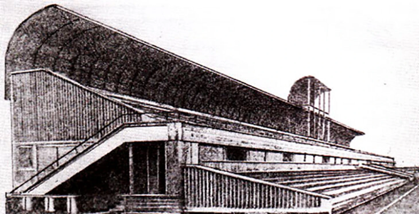 В отличие от необычного железобетонного стадиона «КСИ», это сооружение было деревянным и смотрелось дешево. В архитектурном плане можно отметить полукруглый навес над верхними рядами трибун, который как будто отсылает к пляжным кабинкам того времени.