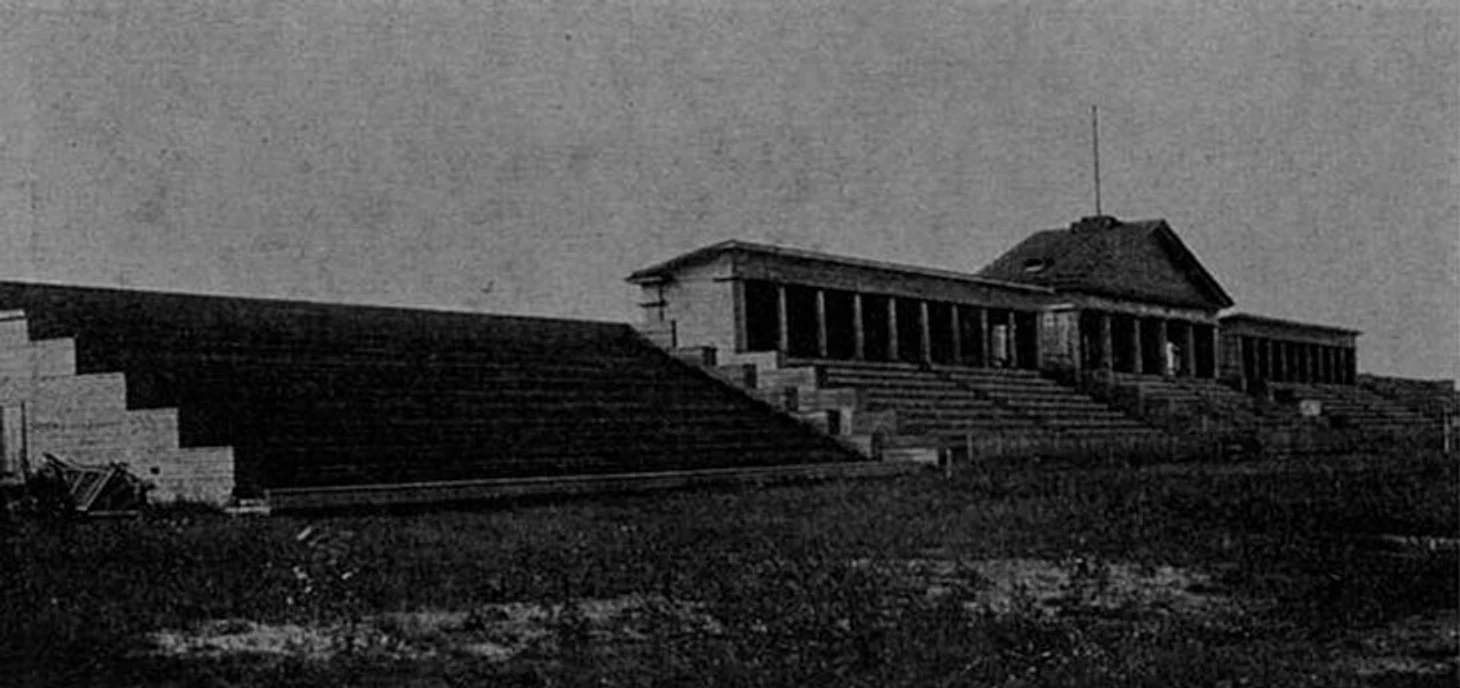 Это стадион-эксперимент, первенец советского конструктивистского стиля в спортивной архитектуре. Построен на территории парка при бывшей даче царского сановника Дурново.