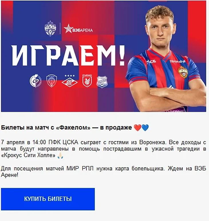 Но то, что в свой продукт нужно инвестировать, - это факт. У зрителей должна быть причина не только прийти посмотреть матч, но и хорошо провести время. Упоминайте об этой возможности во всех каналах маркетинговых коммуникаций.