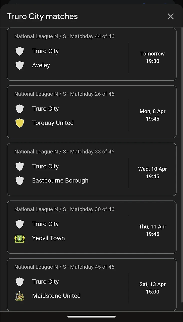 Однако все это цветочки и детская нагрузка, сказали бы в «Труро Сити», клубе шестого английского дивизиона. Команда из графства Корнуолл проведет целых пять домашних матчей за семь дней. Загибайте пальцы: 6 апреля против «Эйвли», 8 апреля − «Торки Юнайтед», 10 апреля − «Истборн», 11 апреля − «Йовил», 13 апреля − «Мэйдстон Юнайтед».