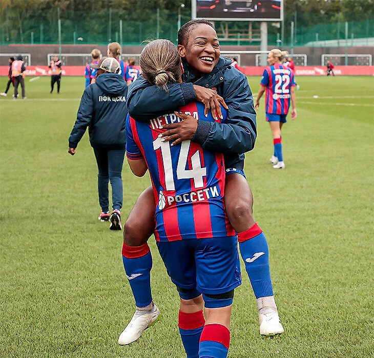 Например, нигерийская нападающая ЦСКА Франциска Ордега. В Суперлиге-2023 она в 22 матчах сделала шесть ассистов и забила девять голов (один – с нулевого угла!). А еще у нее насыщенная жизнь: играла по всему миру, открыла фонд помощи в родном городе и гоняет на поездах по России.