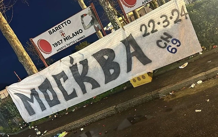 Объединение Curva Nord 69, поддерживающее миланский «Интер», и их полотно около «Сан Сиро».
