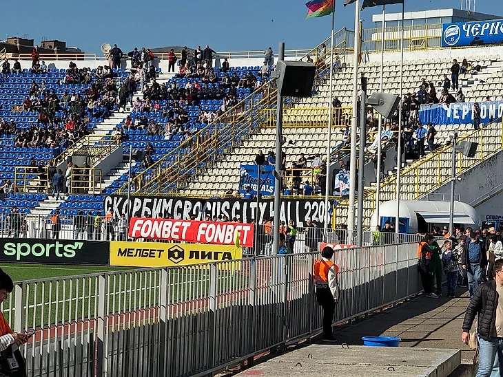 Сектор активных болельщиков минского «Динамо». Именно болельщиков, а не фанатов. Белорусские ультрас ушли с трибун больше трех лет назад в знак протеста против событий осени 2020 года.