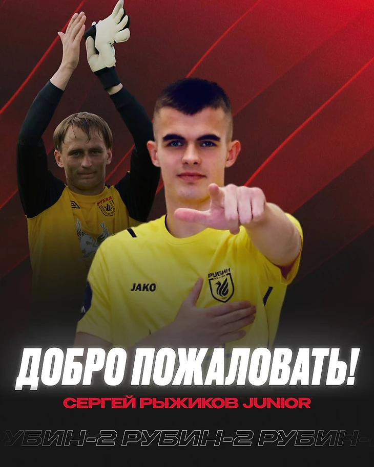 Состав дубля «Рубина» пополнил 18-летний вратарь Сергей Рыжиков младший.