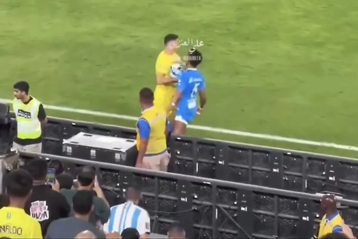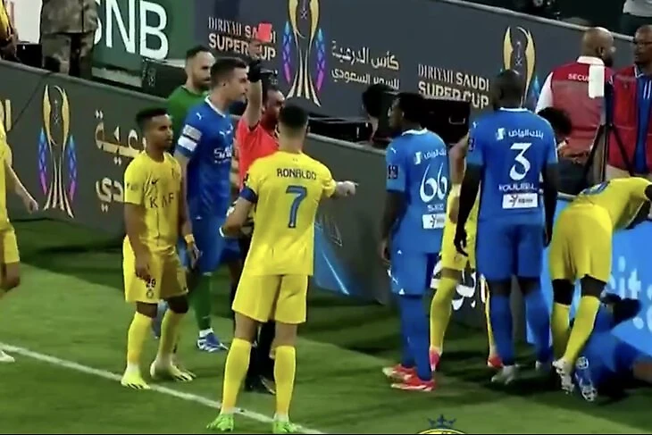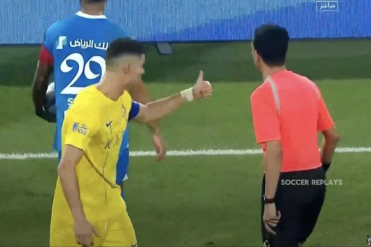 Сначала защитник «Аль-Хилаля» Али Аль-Булайхи подкатился под Криша у боковой и выбил мяч в аут. После этого попытался сразу же взять мяч, но к нему подоспел Роналду и ногой вынес из рук.