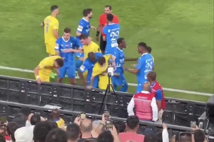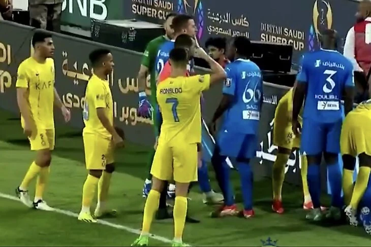 Образовалась потасовка. Игрок «Аль-Хилаля» упал и получил сверху еще, когда над ним прошлись футболисты «Аль-Насра».