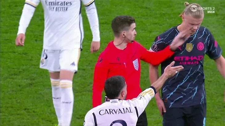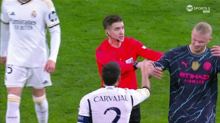 Эрлинг Холанд получил удар по щеке от арбитра в перерыве матча «Манчестер Сити» - «Реал Мадрид»