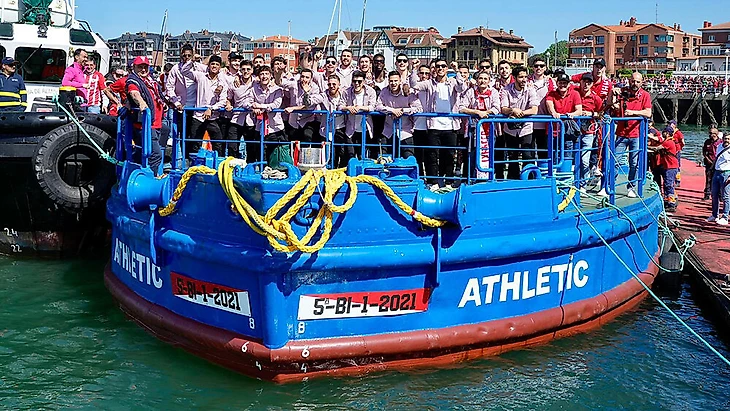 Кстати, идея с баржей принадлежит не «Атлетику»: первым это осуществили соседи из «Асеро» (тоже из Бильбао) в 1924-м после победы во второй лиге. А само судно – символ индустриального прошлого провинции Бискайя в XIX веке.