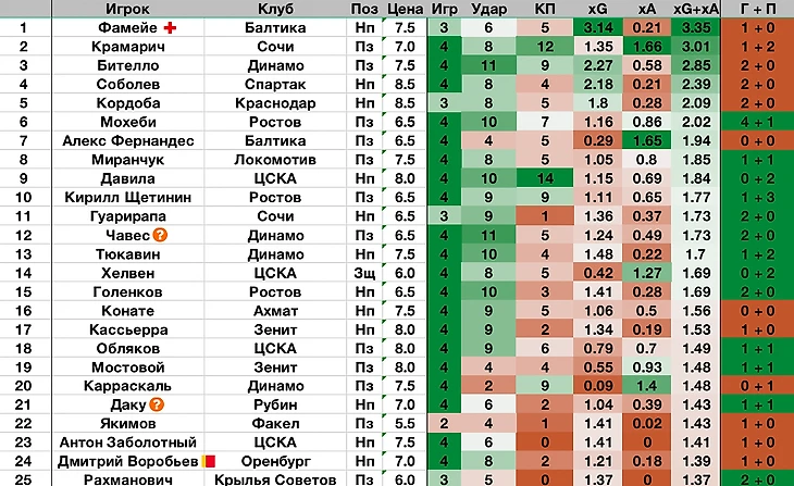 Смотрим на топ-игроков по xG+xA за 2 весенних тура РПЛ.