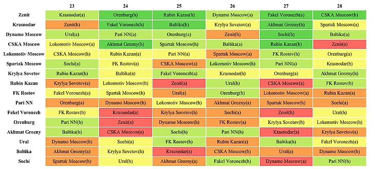 Календарь сложности поможет спланировать состав на несколько туров вперед.