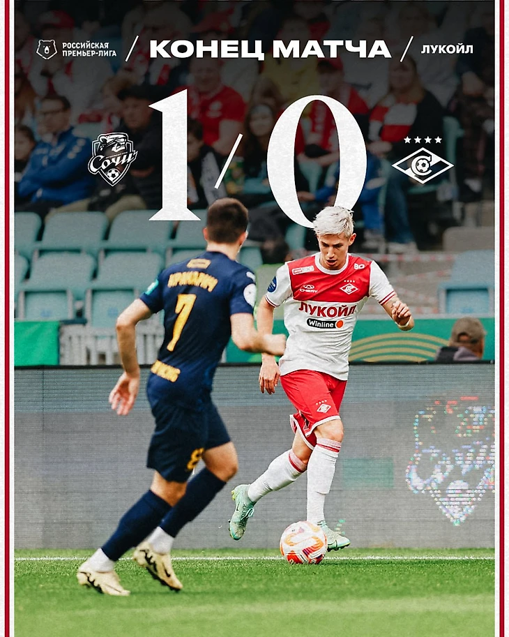 «Спартак» на выезде проиграл «Сочи» в матче 24-го тура РПЛ — 0:1.