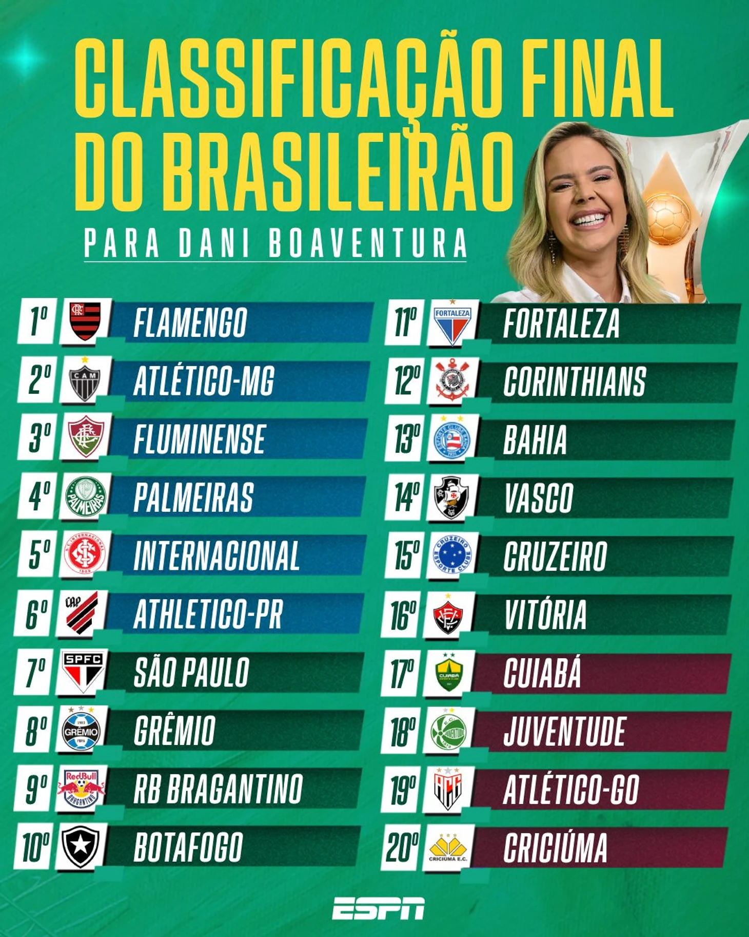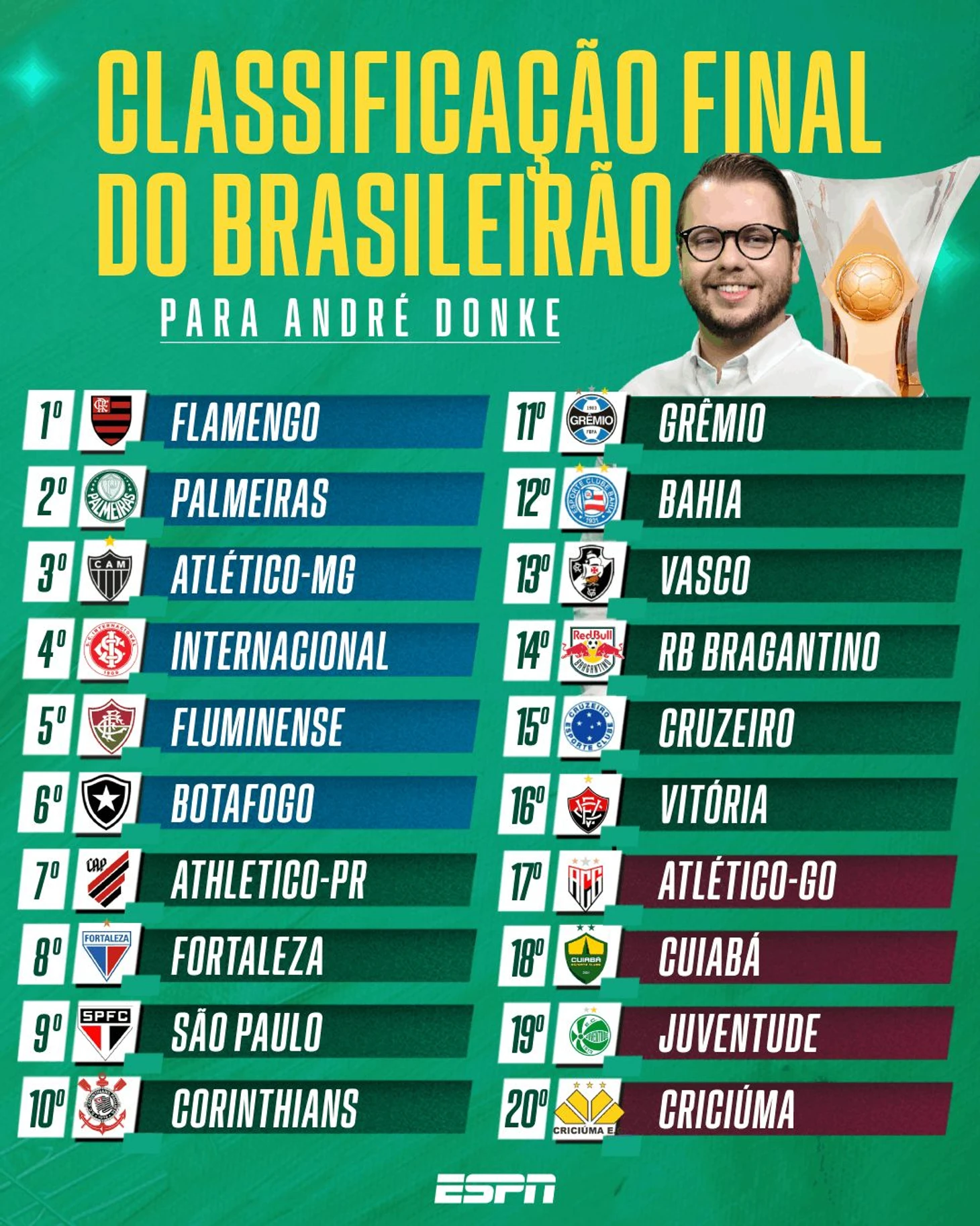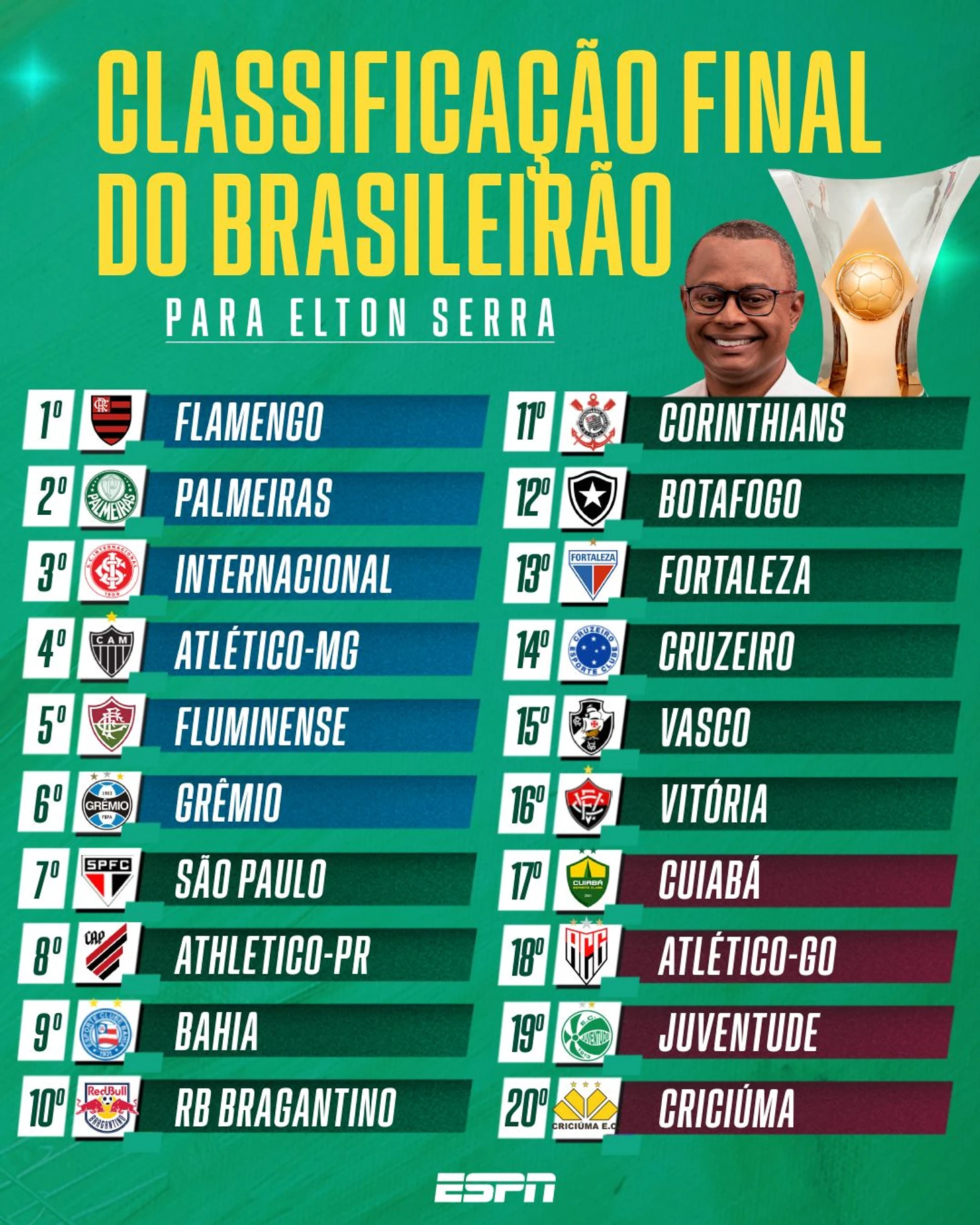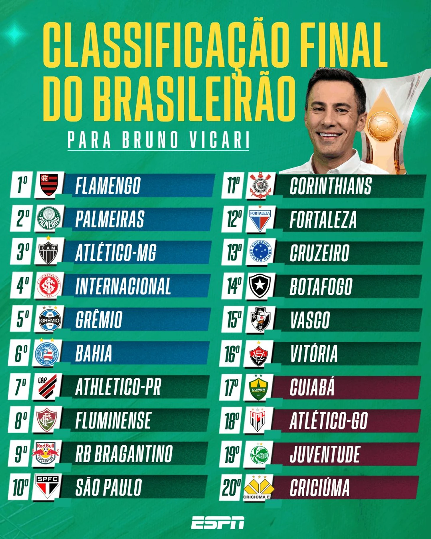 Globo же предпочел привести мнения своих колумнистов, отдавших голоса за тот или иной исход. Как видите, практически никто не верит в «Баию», «Брагантино», «Куябу» и «Гояниенсе» с «Виторией»