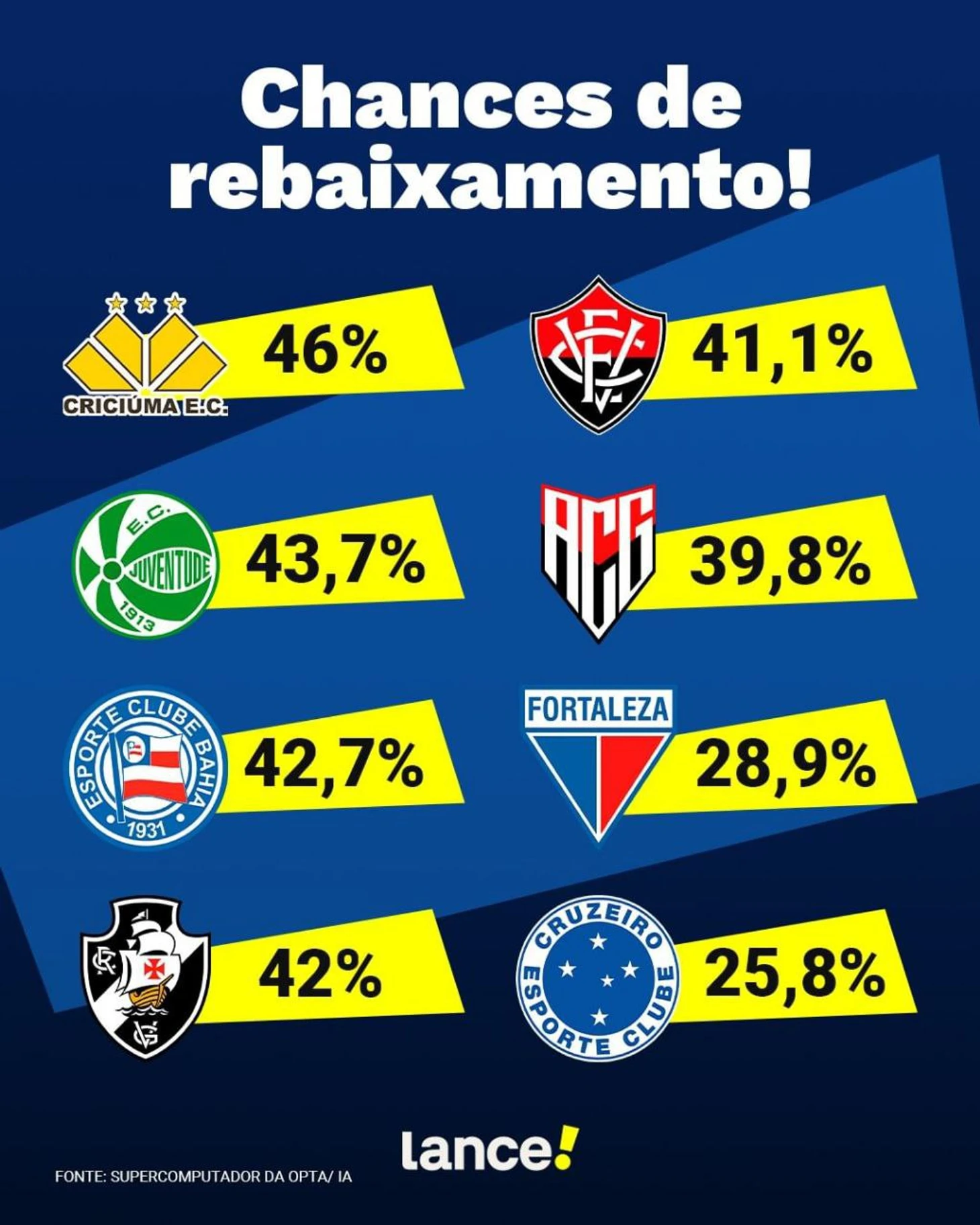 И практически хоронит новичков сезона и амбициозные «Баию» и «Васко да Гама». Шансы на вылет превышают 40%.