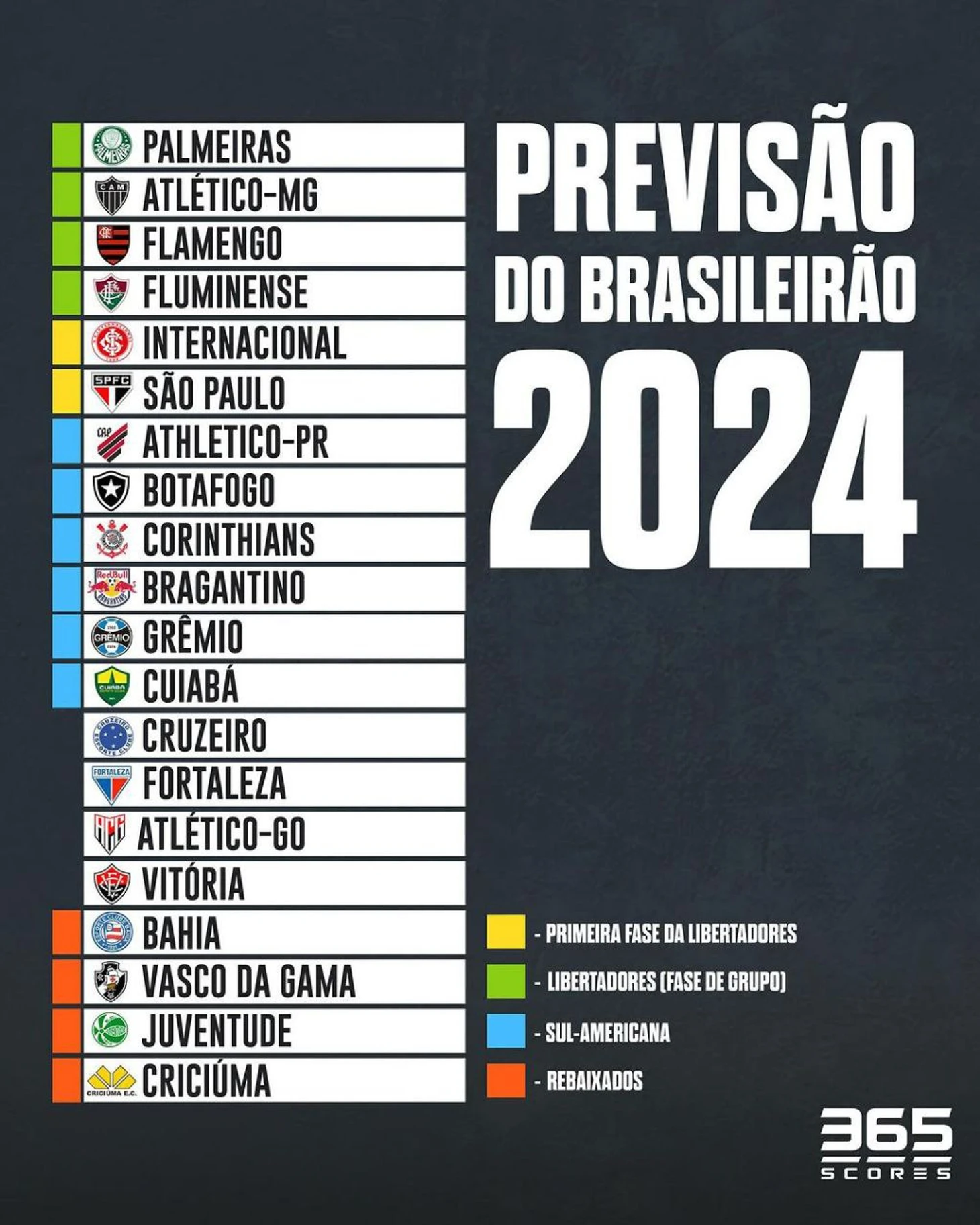 Так-то фавориты понятны: Фла, Палмейрас, КАМ, далее уже большая группа преследования (Интер, Гремио, Ботафого, Коринтианс, Сан-Паулу, да и Баия, Брага, Форталеза способны взлететь).
