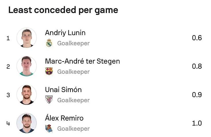 Оказалось, все не так просто. Немец пропускает в среднем 0,81 гола за матч чемпионата в этом сезоне. Но есть кое-кто круче: на данный момент лучшим является Андрей Лунин - он пропускает в среднем 0,6 гола. В этом сезоне украинец оформил 10 сухарей в 19 матчах лиги.