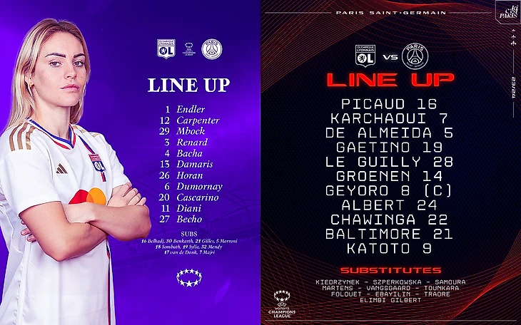 Команды отдыхали неделю – «Лион» разгромил «Сен-Этьен» (6:1), а вот «ПСЖ» едва не проиграл «Генгаму» (3:3). Соня Бомпастор и Жоселин Прешёр выставили такие составы:
