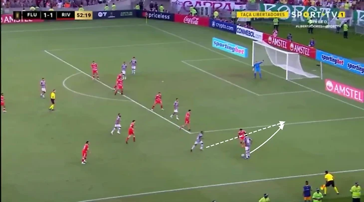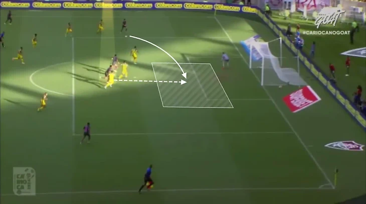 Нападающие «Флуминенсе» часто делают забегания в район дальней штанги во время навесов и прострелов, чтобы таким образом оказаться за спиной у защиты и полностью контролировать ее перемещения.