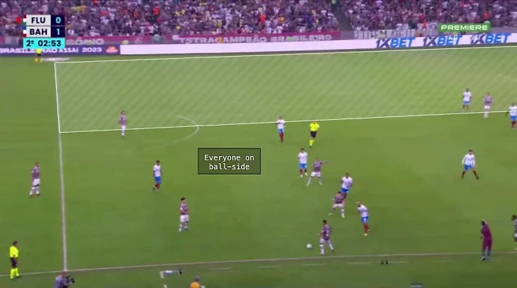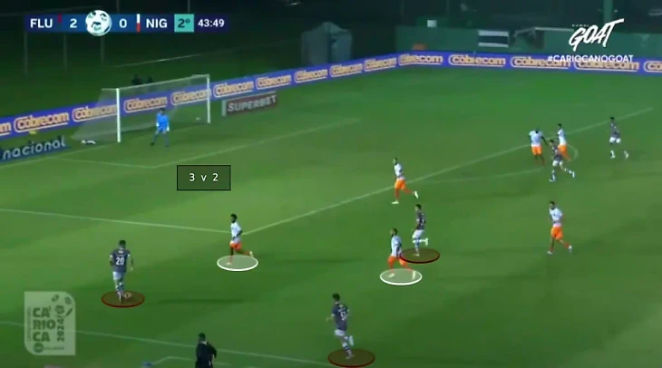 Основной целью «Флуминенсе», как правило, становится крайний защитник соперника, вокруг которого концентрируются сразу несколько атакующих футболистов, формируя численное преимущество в его зоне.