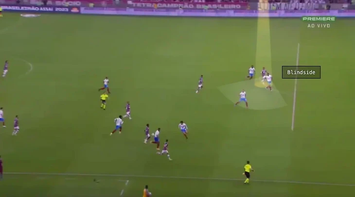 Интересной особенностью игры нападающих «Флуминенсе» является расположение всегда за спиной у центрального защитника соперника – в «слепой» зоне: