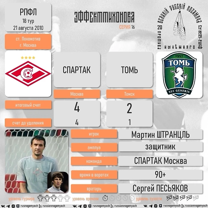 Песьяков косячил еще задолго до того, как он стал мемом. И если в этой игре его ошибка не стала столь фатальной и Спартак спас победу, хотя Циркуль или Штранцль все же пропустил, то теперь его ошибки в пользу Спартака совсем не радуют Валеру....а в том матче он был тренером москвичей, кстати. А вот Дзюба не попал в заявку Томи в том матче...