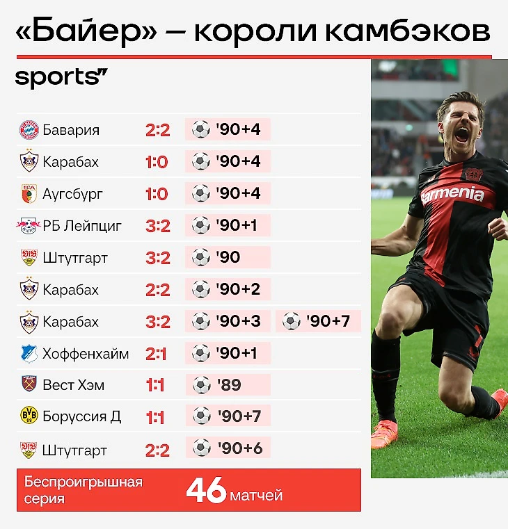 «Байер» не проигрывает 46 матчей и обожает камбэки. Особенно после 90-й