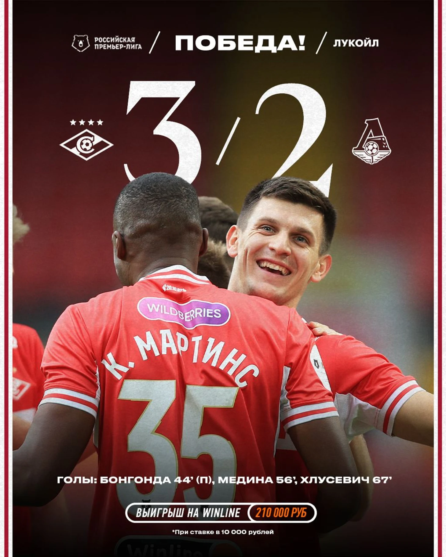 К счастью, на пропущенный мяч спартаковцы отреагировали парой своих голов. Медина выскочил на свободное пространство на классную подачу Литвинова и точно пробил головой в нижний угол.