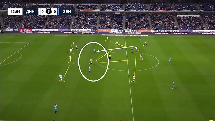 У «Зенита» были возможности раскачать «Динамо» – особенно в первом тайме. Классика сезона «Зенита»: без больших скоростей, с нулевым драйвом, на огромном спокойствии и самоуверенности. Но Даниил Фомин и Луис Чавес слишком часто зависали, заставляя разрываться Диего Лаксальта. Опорную зону заполняли Вендел, Кассьерра, Артур.