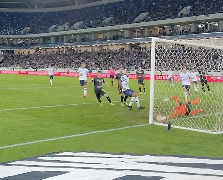 ✋ Забавно, что в моменте можно было рассмотреть пенальти: мяч после удара Глебова сначала задел руку защитника «Балтики».