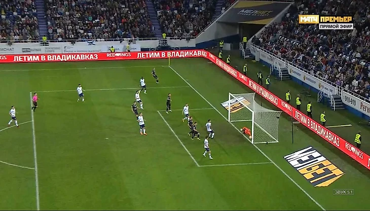 Чуть больше вопросов по этому ракурсу, хотя по проекции мяча кажется, что полностью мяч не пересек линию.