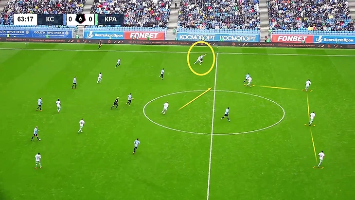 «Краснодар» интересен тактически: тройка защитников искала партнеров между линиями, Эдуард Сперцян и Кади блуждали по опорной зоне «Крыльев» и тонко подыгрывали, а Виктор Са и Сергей Волков создавали ширину. Эффект был: гости классно расчертили атаку с отмененным голом Волкова, создали несколько опасных подходов в штрафной, мог забивать Кади.